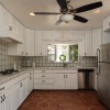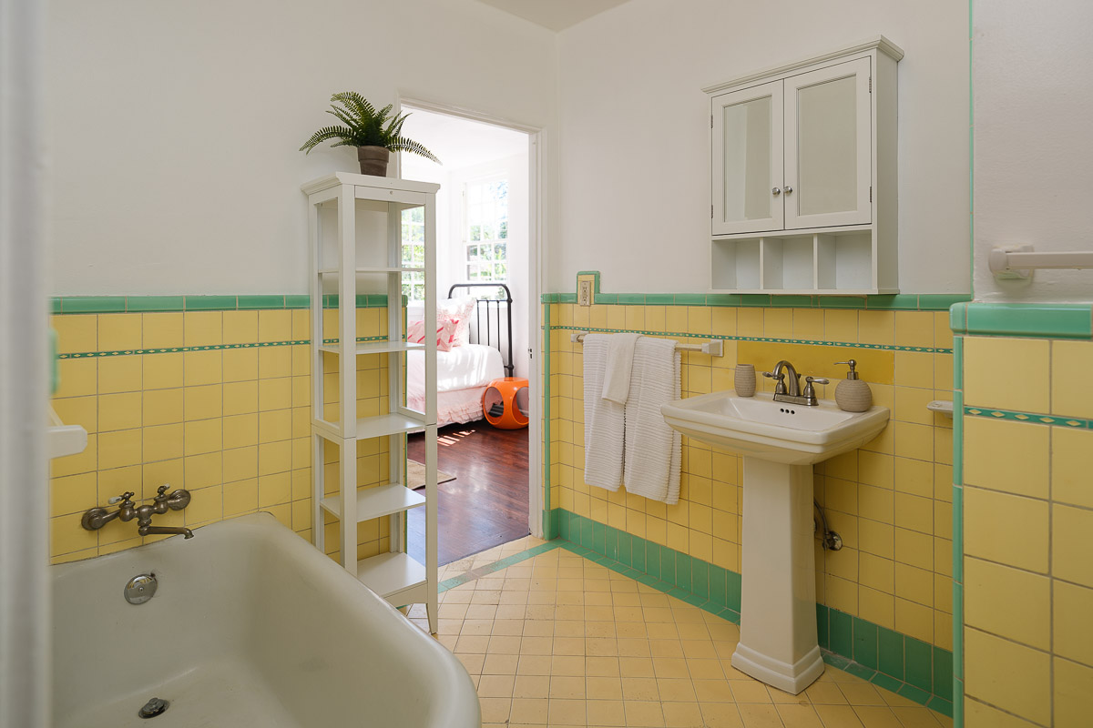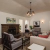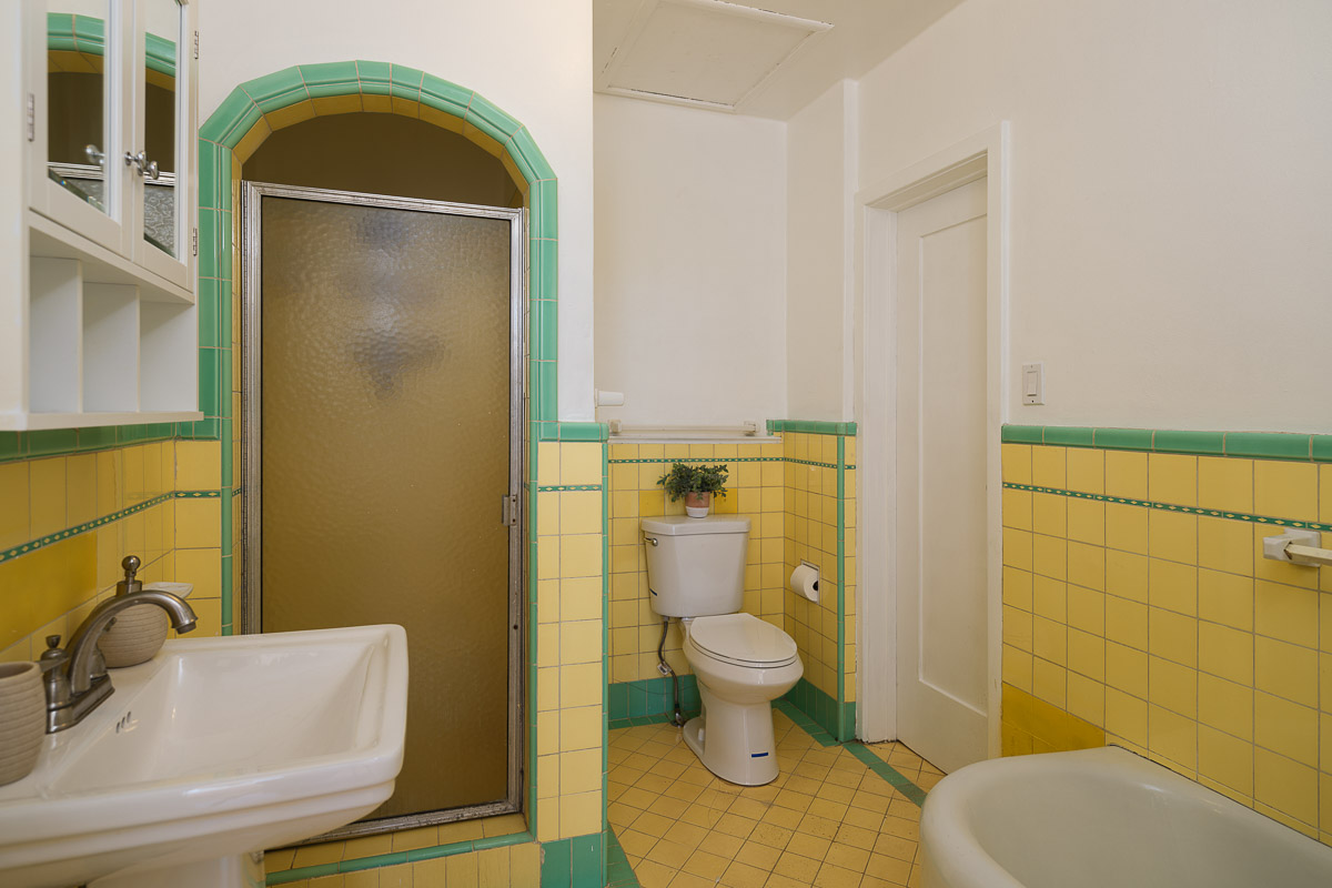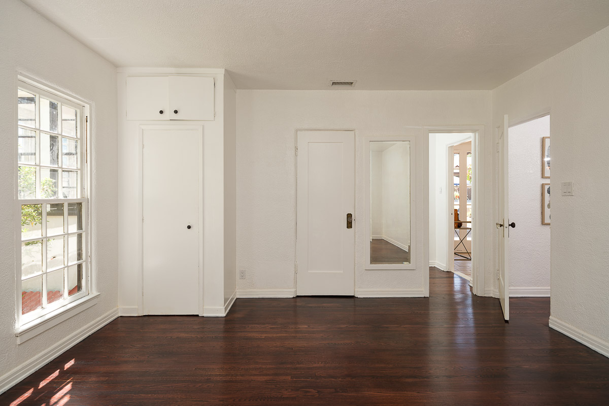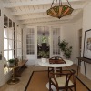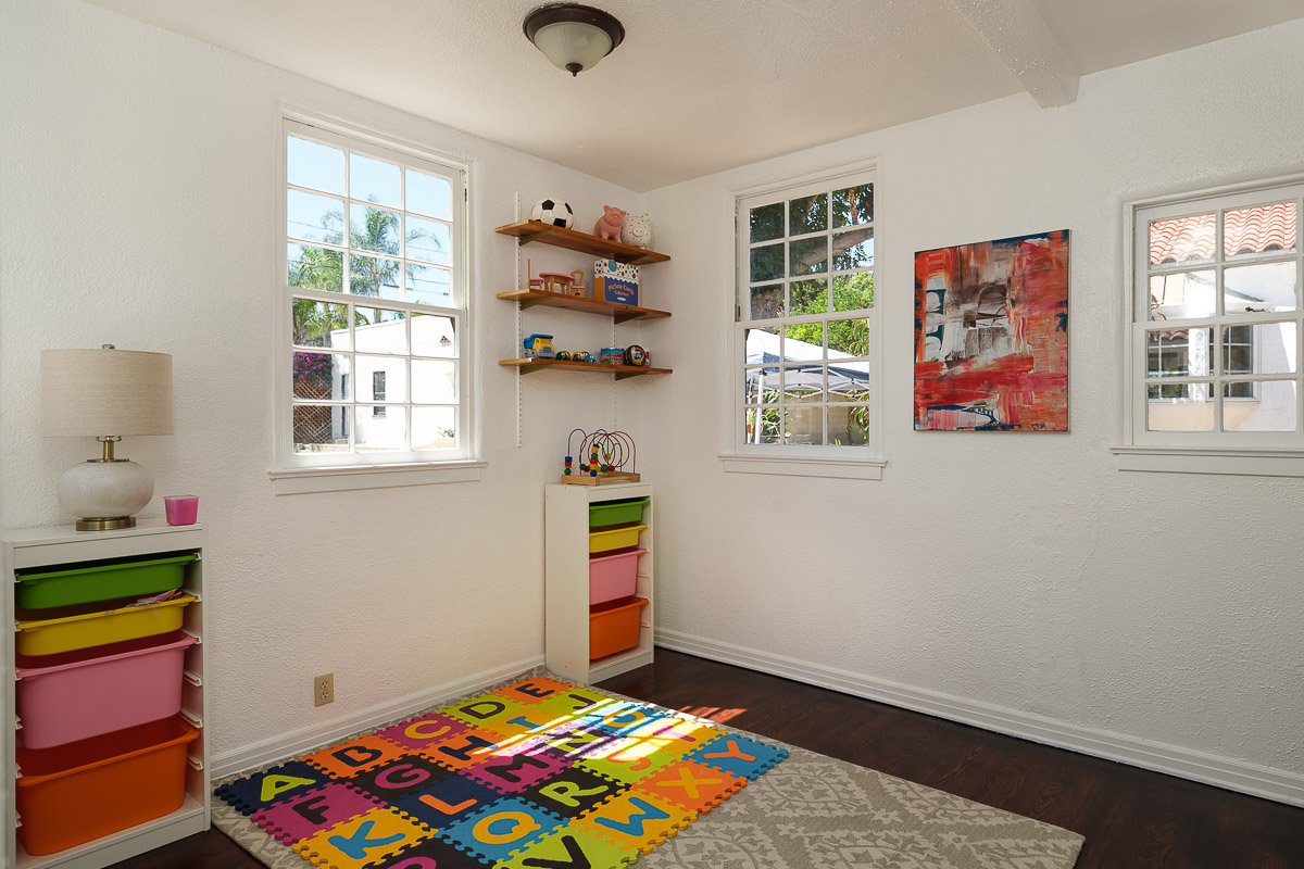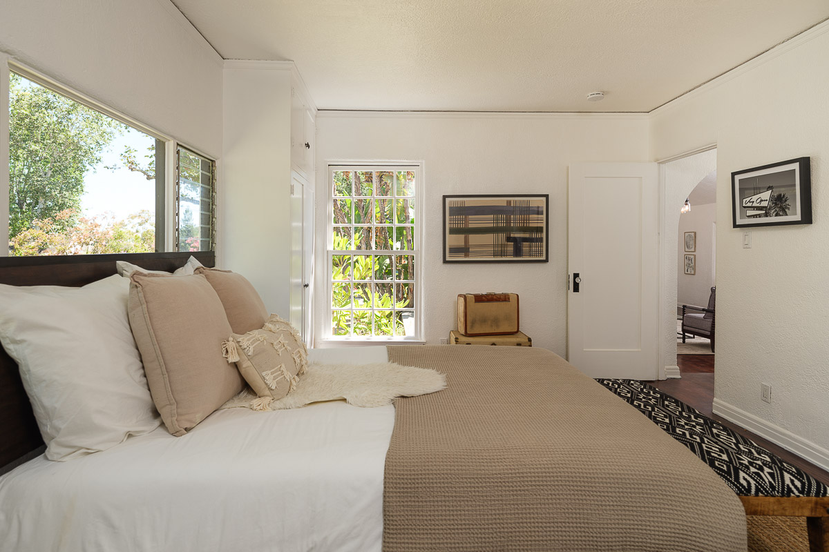 The residence has incredible character details throughout. You are welcomed in via an expansive living room with a soaring arched front window and tall ceilings. From there you step up to the formal dining room, wrapped in windows, that leads to a light filled sun or family room, with wide cross beams, and a wall of windows. There is a sunlit kitchen with white cabinetry, a built-in office nook and handcrafted hexagonal, Saltillo tile. In addition, there is a large utility or laundry room. The interior is filled with old-world, architectural details including period fixtures, a stately fireplace, 1920’s tile, gleaming polished wood floors and so much more.