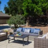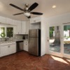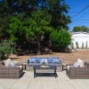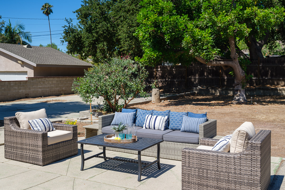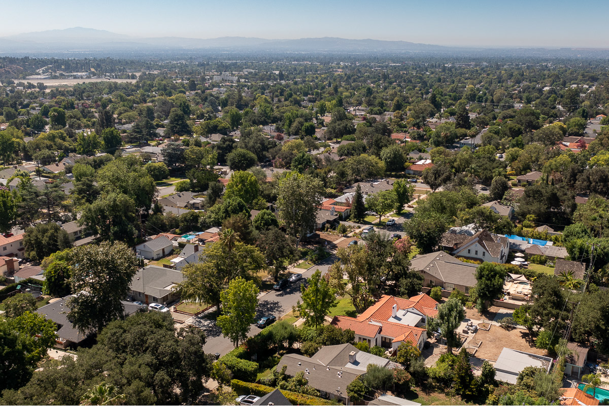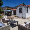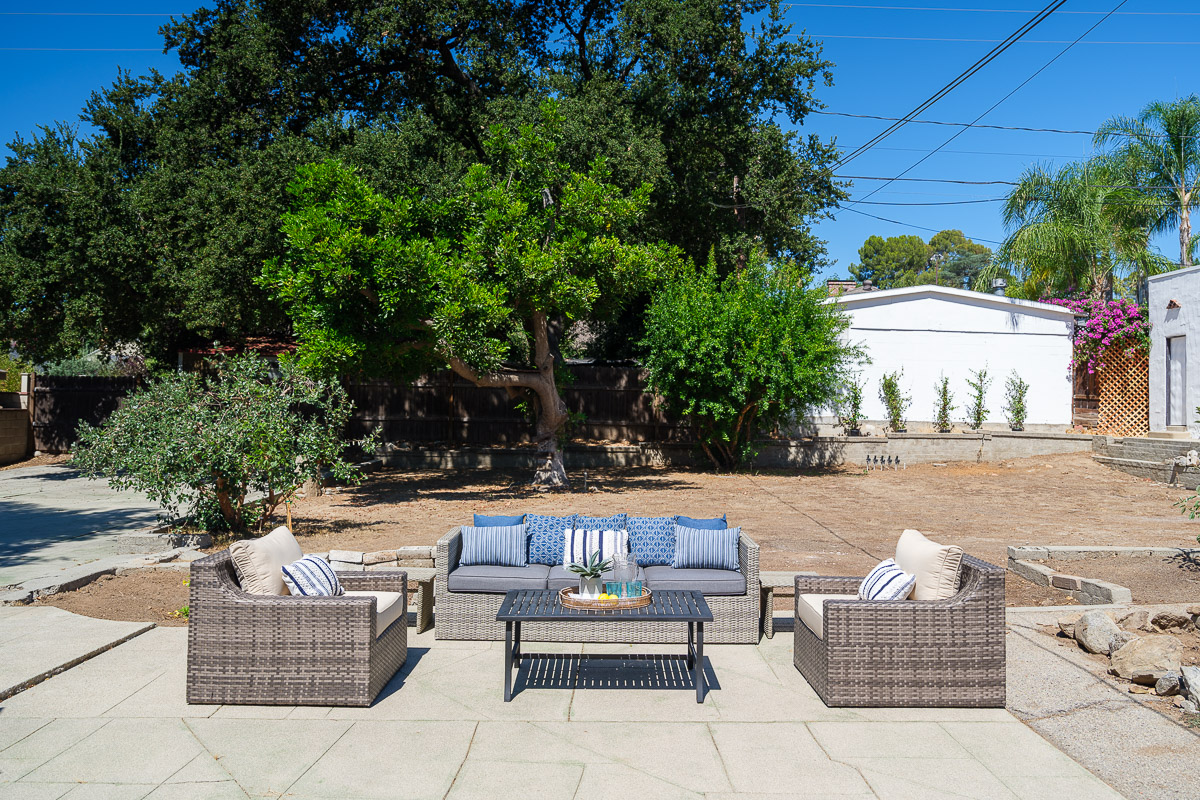 The rear of the home opens out to the step-down patio and yard that has numerous areas for relaxing under the stars or for entertaining friends. The wide 19,782 square foot parcel circles the house and is dotted with patios as well as numerous mature fruit trees that help to offer a feeling of serenity. The sizable backyard has limitless possibilities to create your own retreat.
